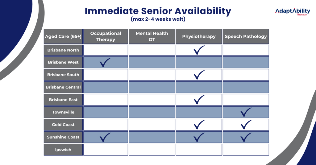 Adaptability Therapy offer a range of allied health services across Brisbane, the Sunshine Coast, and the Gold Coast. Our experienced clinicians support their paediatric, adult, and senior clients to reach their goals through occupational therapy, speech and language therapy, and physiotherapy.